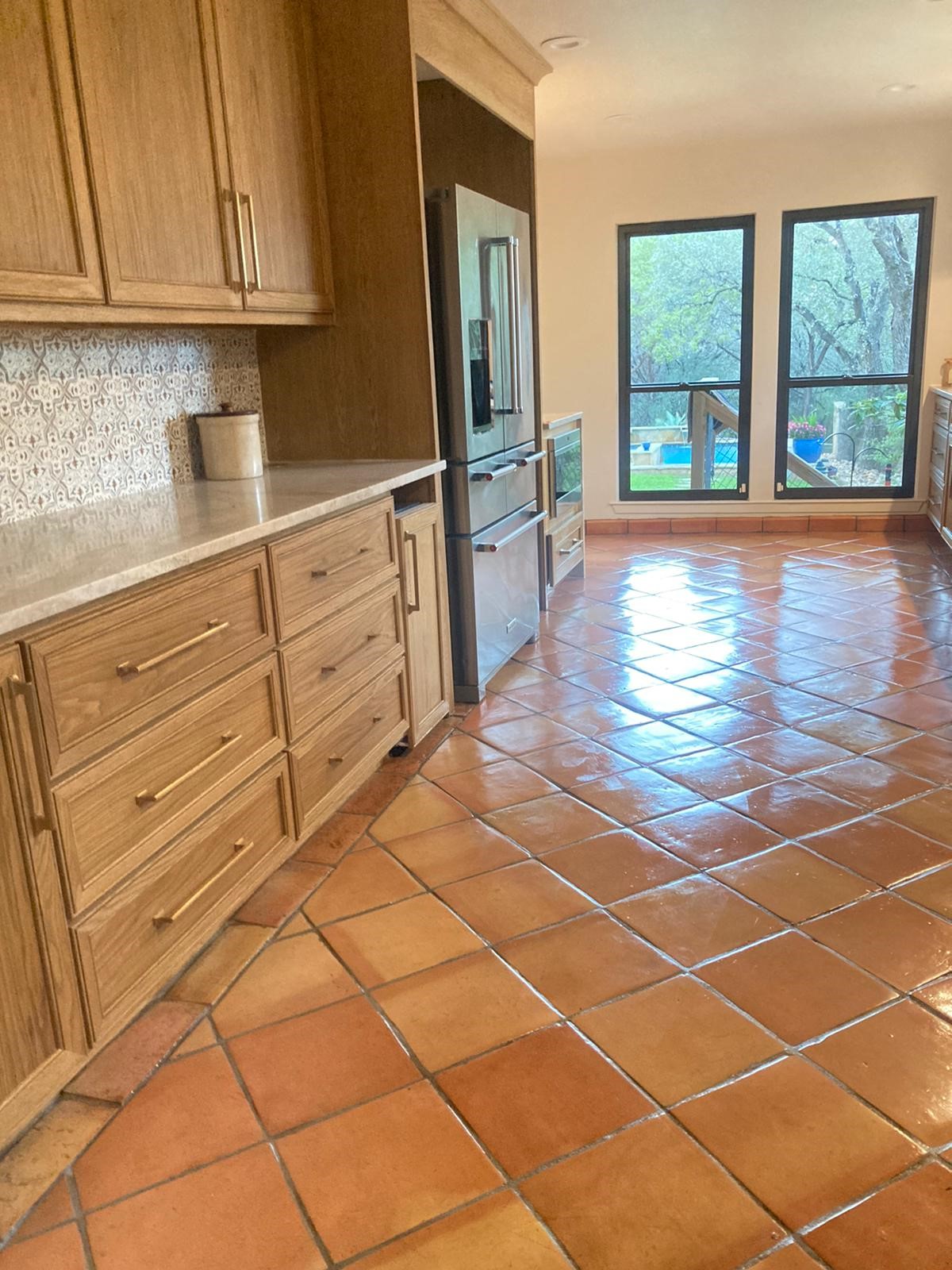 Saltillo Tile Natural installed in "Chateau Pattern"