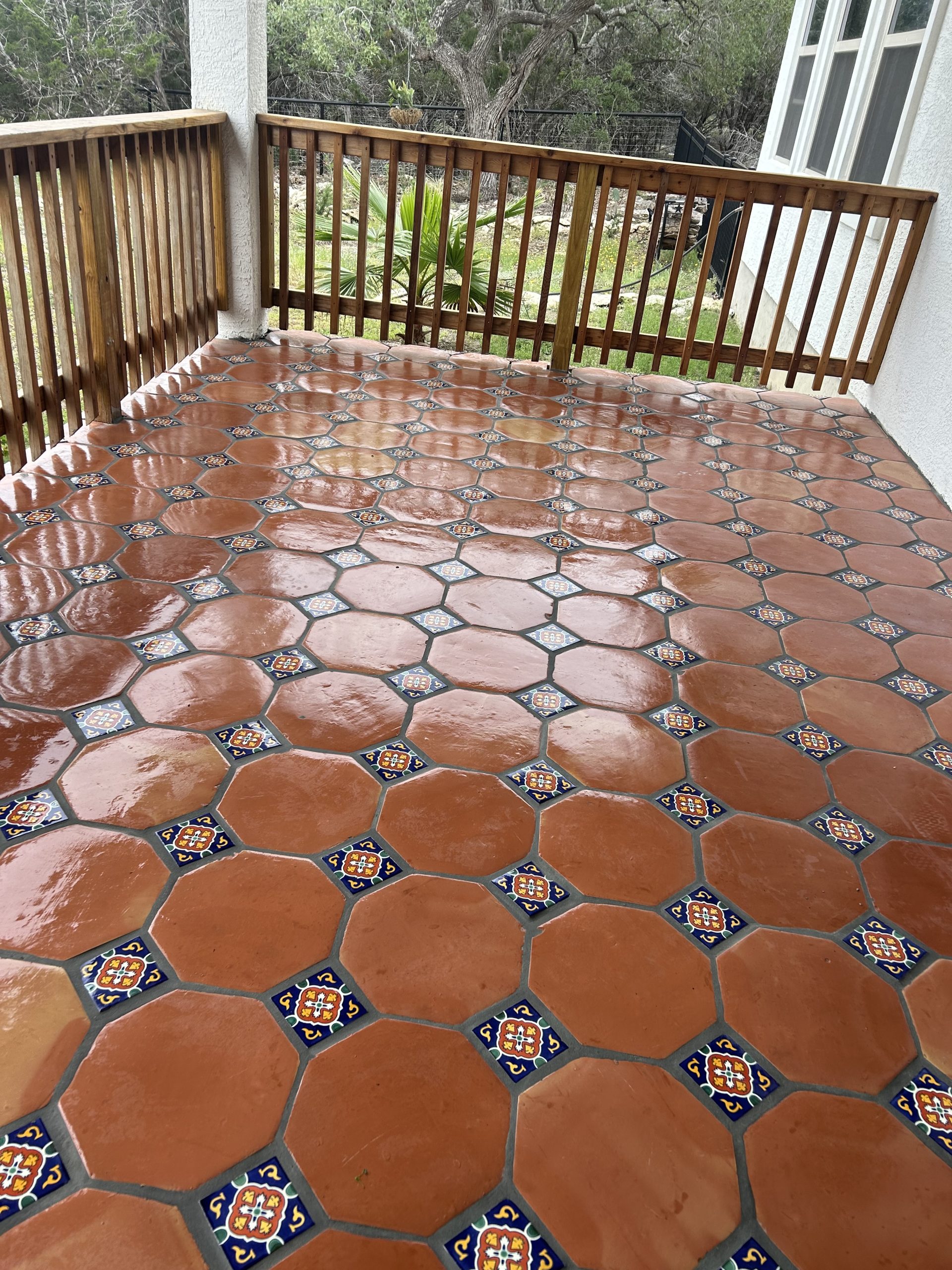 Octagon and Dot Saltillo tile with Talavera inserts.